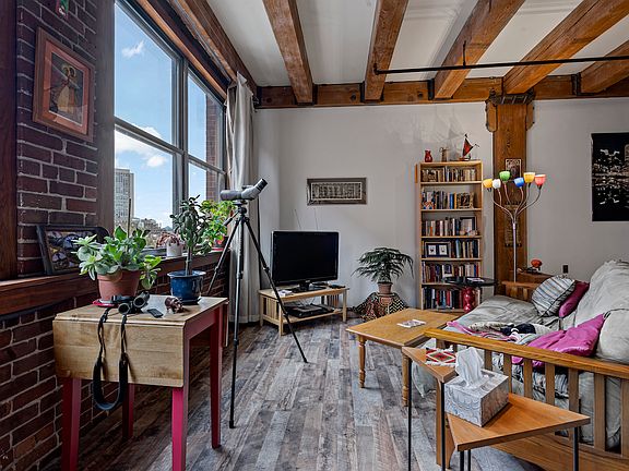 You'll love the dramatic ceiling height in this extra large studio in the ultra-hot Fort Point neighborhood. True loft-style home features wood floors, beamed ceiling, exposed brick and extra large windows with panoramic skyline views. Chef's kitchen offers stainless steel appliances and plenty of custom cabinet and counter space. Central air and in unit laundry included. Steps to the Seaport and Financial district, top restaurants, shops, galleries and the waterfront.