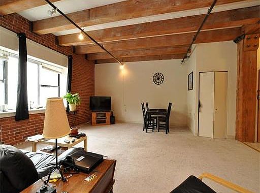 Spacious and bright south facing one bedroom loft with high ceilings, exposed bricks and beams.....kitchen with stainless stove and dishwasher, redone bathroom with granite vanity. Full size washer/dryer, AC, Doorman and so much more.....steps to all the city has to offer in prime seaport location. FIRST SHOWINGS at Open House on Sunday 7/13 from 12:30-1:30 PM