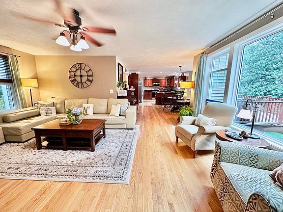 Spacious, sunny 3 bedroom Colonial home set in a peaceful area of Lee. Enjoy nature from the rear deck and beautifully paved rear patio. The first floor of this home has an extra large eat in kitchen, which opens to a roomy living room with gas fireplace, and a well-sized formal dining room, office/den space with pellet stove, and half bath. The second floor has an oversized primary suite, with walk-in closet space, and a recently renovated private bathroom; two additional bedrooms, one bonus room with gas fireplace, and full bath. Lower level offers a large family/game room for entertaining. Conveniently located to all major routes, shopping, Wentworth Douglas hospital, and UNH.
