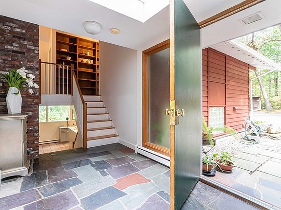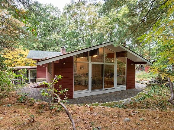 Set back off of Spruce Hill Road, an ideal location in Weston, this Midcentury-Modern Techbuilt, designed by esteemed architect Carl Koch, has been expanded with the 1964 addition of a Great Room with a fireplace, beamed cathedral ceilings, and a Zen-like relationship between indoors and out that lovers of modernism appreciate. Recent updates include a Buderus boiler; 2012 roof; and double-glazed windows. An open floor plan flows from the European kitchen (with Subzero refrigerator and newer Bosch dishwasher), to a family room, and a screened porch beyond. Three bedrooms with beamed cathedral ceilings and clerestory windows, and three full baths, including an en suite master. A detached two-car garage. This home offers a great opportunity to live the "Hipsters in the Woods" lifestyle in the coveted town of Weston. Nearby Cat Rock Park conservation area offer over 80 acres for dog walking, X-country skiing, and hiking. 4-BR+disposal septic