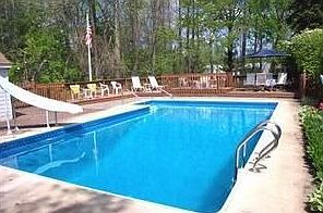 Move in just in time to enjoy your back yard oasis!! Lovely 4 bedroom colonial on a private lot with inground pool/deck/pool house. Custom cherry kitchen with slider to patio and all appliances included. Dining room with built ins and beautiful hardwood floors. Woodburning fireplace. Wet bar in basement rec room. Tear off roof 2009. Low Fairport Electric.