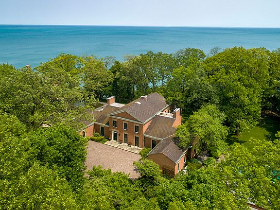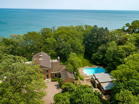 Cultivate your own piece of history with this exceptional jewel! Designed by Walter Frazier, this "New Formalist" Palladian Villa's classic/modernist design blends spectacularly with 3.6 acres of manicured grounds. The masterpiece lakefront estate has 7 bedrooms, 5 fireplaces, walnut floors, de Giulio kitchen, 10 baths and a 3 car heated garage. The floor plan flows effortlessly and features a solarium, green house and floor to ceiling original steel sliding glass doors all lake front views. Even the tree house has lake views! The stunning pool & pool house villa with basement are set off the master suite. This pristine property features a fully mature & secure bluff, 400 ft. of private beach and a rare grandfathered boathouse. Extensive restoration has been performed by famed Vinci ; Hamp Architects, Inc and Futurity, Inc. Mesmerizing lake views, a beach, a forest, a bluff, a home, a location: an estate of this caliber is a rare gem. This is an exceptional example of Walter Frazier's genius that transitions perfectly into the 21st Century.
