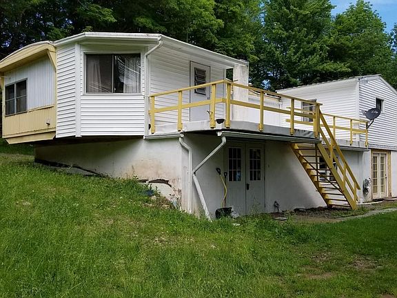 This mobile home has 3 bedroom, 2 bath. with a foundation 24x50. Great for a future modular home! Sits on 6+ acres on a quiet country road. Huge commercial building, 2 car garage 10x12, commercial rotary car lift, clean burn waste oil furnace to heat garage!