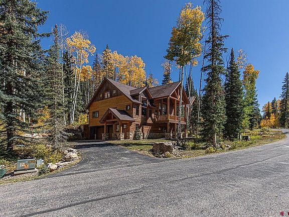 GORGEOUS MOUNTAIN RESORT HOME AT PURGATORY RESORT! Experience the perfect blend of modern contemporary elegance and rustic mountain luxury in this stunning resort home, nestled within an aspen grove at Purgatory Resort. This exquisite property features hand-hewn log siding and striking full log detailing that exudes charm and warmth, both inside and out. Key Features: Inviting Living Spaces: Enjoy cozy evenings by the beautiful stone fireplaces in both the living room and master bedroom. With over 50 strategically placed windows, natural light floods the home, offering breathtaking views of the Hermosa Cliffs. Open Great Room Design: The main level boasts a spacious and flowing great room that seamlessly connects to a large, covered deck—perfect for outdoor entertaining and soaking in the tranquil surroundings. Spacious Kitchen: The chef’s kitchen features ample counter space adorned with chiseled edge granite countertops, a stunning cherry bar top, and elegant alder cabinets. You'll also absolutely love the views while cooking and entertaining! Luxurious Accommodations: This home includes three en-suite bedrooms, each with private baths and an additoional guest bath which shares a full bath with the loft area. The five-piece master bathroom is a true retreat, featuring a large jacuzzi tub with picturesque views of the surrounding aspens. The lower-level bedroom and bathroom offer versatility as a bunk room or additional living area. High-Quality Finishes: Solid clear pine trim and doors, along with aspen tongue and groove vaulted ceilings, elevate the home’s aesthetic. Radiant heated floors throughout the lower and main levels ensure comfort year-round. Turnkey Living: This home comes fully furnished with designer-level furnishings, making it ready for you to move in or start your vacation rental venture immediately. Resort Amenities: As an owner member of the Durango Mt. Master Association, you’ll enjoy exclusive access to a variety of amenities: Private Club: Dine at the club restaurant with a full bar, cozy lounge, and a game room featuring TVs, video games, and more. Outdoor Recreation: Relax in the heated outdoor pool with a slide, oversized hot tub, and enjoy easy access to food and beverages at the Bear Bar. Fitness and Wellness: A full fitness facility with state-of-the-art equipment, spa treatment rooms, and convenient shuttle service to the slopes. Community Events: Engage in social and culinary club events throughout the year, along with discounts at local retail and dining options. This gorgeous mountain retreat is not just a home; it’s a lifestyle waiting to be embraced. Don’t miss your chance to own this piece of paradise at Purgatory Resort!