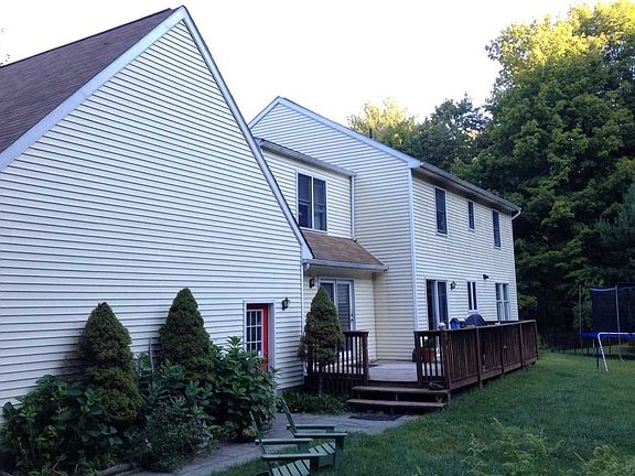 Spacious colonial located near the end of cul de sac on 3.7 plus acres offering a semi-private setting. Open floorplan family room with brick fireplace, flows into kitchen with eat-in dining area and breakfast bar. Second floor has master suite, 3 additional bedrooms and full bath. Generous sized rooms. Hardwood floors throughout. Semi-Private backyard with large deck. Established neighborhood in Rhinebeck School District. Close to Omega and Taconic State Pkwy, min to the Village Of Rhinebeck.