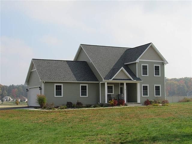 Newer home recently built near cul-de-sac of newer homes. 3 BRs, 2 bath, LR w/ hardwood floors open to eat-in kitchen. Sliders to deck overlooking large yard. Formal DR w/ hardwood. bath w/ 1st fl laundry. 2nd fl BRs w/ Master w/ walk-in and bath. Gas heat and central air.
