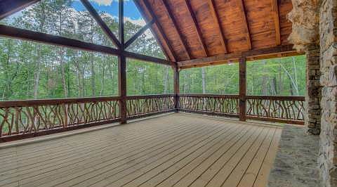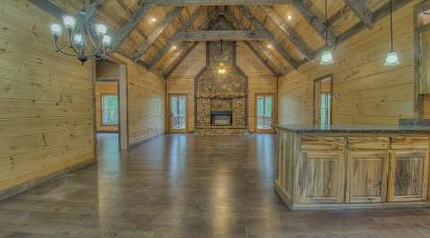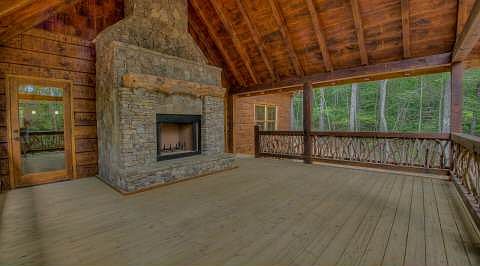 Beautfiul true log home with old style features including hand hewn timbers with dove tail ends, rough cut beams , reclaimed mountain laurel, 3 bedrooms 2 baths, large luxury kitchen, custom cabinets with granite counters, open floor plan with vaulted ceilings, exposed beams, blue pine accents, hardwood floors. Two immpressive fireplaces with detailed stone work. Exterior features two impressive stone fireplaces and party porch offering privacy, peace, and quiet. Complete and ready to show.