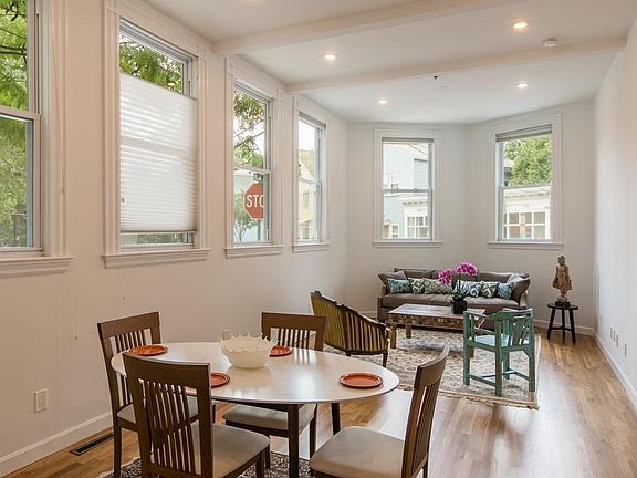 Striking, sun-filled, loft-style corner unit in Union Square with exposed brick walls, high (10'10") ceilings, huge windows with park views, open living/dining floor plan, central air, in-unit w/d, 2 bedrooms. Second bedroom has private egress. Sleek, contemporary kitchen featuring grey cabinets with soft close doors and drawers; new stainless steel stove, dishwasher, refrigerator, and microwave; flecked white quartz countertops; and under-cabinet lighting. Recently tiled full bath with new vanity and medicine cabinet. Refinished oak floors throughout (except tiled bath). Freshly painted. New Nest thermostat. Water heater replaced 2016. Large (approximately 10'x8') private basement storage room. Common roof deck slated to be rebuilt this summer. Building roof replaced in 2016. Pet friendly. Steps to dog park, Union Sq. shops and nightlife, several bus routes (CT2, 85), and future Green Line subway stop. Easy access to MIT, Harvard, Tufts, Routes 93, 95, 2, 16, 38, 28, and airport.
