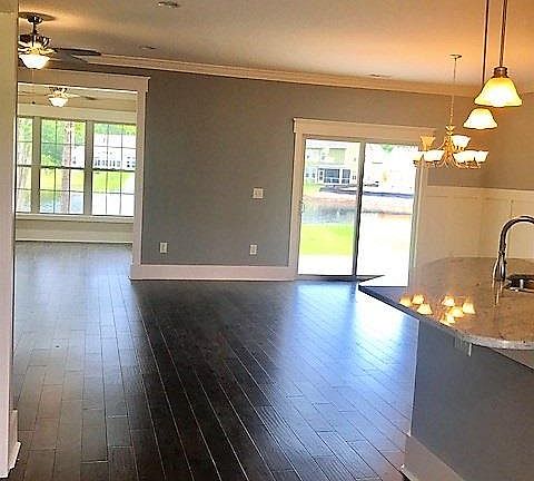 Stacked stone and Hardie plank finishes greet you as you enter the front porch. Come on in and let's explore. You will stand in the foyer of this home in awe of its see thru views to a great backyard with lake front living. 4 bedrooms, 2 Full, 2 Half baths, a showcase kitchen with natural gas range, solid wood oatmeal cabinets with an umber accent, family room, polished but casual dining area, den with gas fireplace and gorgeous built-ins. First floor master suite with shower, dual sinks with the same granite and cabinetry as used thru out the home, PermaStone lifetime warranty floors, and a well-appointed walk in master closet. Other features include a separate laundry room, 2 car garage, rocking chair front porch, backyard patio, first floor 1/2 bath for guests and we haven't seen the second floor yet. Join me as we head to the second floor, where wood stair treads matching the engineered hardwood , (with never any worn carpet stairs...yuk.) Family central for children or great space for guests, the second floor has three bedrooms and one full, and one half bath and provide a great environment for privacy, and peaceful existence where everyone has their own room. Two bedrooms are gigantic, one bedroom is smaller and could be a child's room, great nursery, craft room or office. The trim features and upgrades will astound you in this home. Soft greys, white trim throughout, perfection fitted crown molding, Stainless steel kitchen appliances including a grand refrigerator, gas range, dishwasher and disposal. There is a continuous flow hot water heater, hurricane window coverings stored in finished garage. With the beds and baths meeting your family needs, the living areas of this home permit many areas for conversation. Buy this home with casual elegance as a place you can be proud of. The seller/builder is a S.C. Licensed Realtor. Disclaimer: All square footage is approximate and not guaranteed. Buyer is responsible for verification.