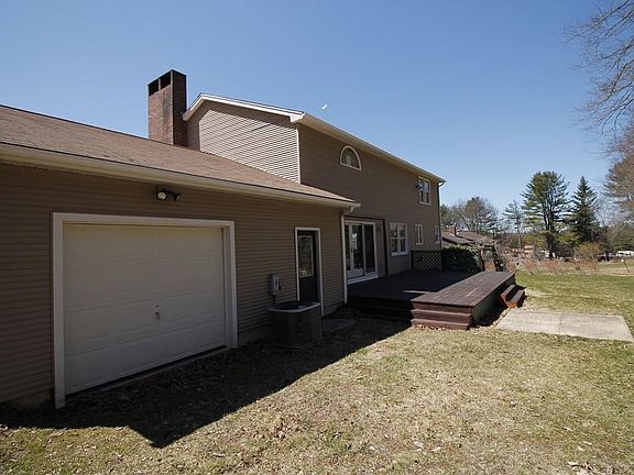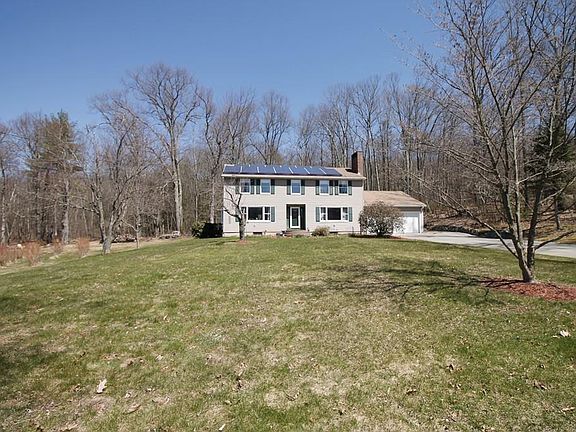 Offering the benefits of renewable energy, this 4 bedroom, 2.5 bathroom home costs less to live in with reduced/no cost for electricity. This elegant, one-owner home was custom-built by the seller. It sits on a wonderfully landscaped, nearly 1 acre lot in a beautiful section of town. It boasts an open floor plan with ample natural light thanks to oversized windows, an oversized slider, and skylights. The living room has a large picture window and fireplace equipped with a wood stove, the dine-in kitchen with a large center island and new granite counters opens to a more informal space with a new oversized slider out to an accommodating deck, and the dining room has a large picture window & a box window. The fireplace in the master-bedroom fosters a cozy space, which also includes a walk-in closet, full bathroom, and a separate vanity. Both upstairs bedrooms have skylights. There is also an intercom system, central vac, and central air. You'll love it here!