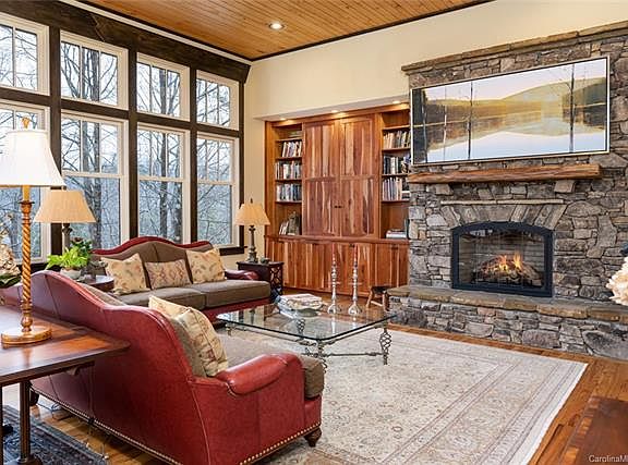 Reynolds Mountain,the perfect blend of Luxury and Nature, experience a tree house with walls of windows embracing views that spark joy:mountains, year round gardens, old stone spring house where animals gather at a small creek.Magic happens here on 1.30 secluded acres protected from mountain winds and road noise, there's room to add a play area, hot tub, a pool. Main Floor Open plan:Living/Dining/ Gourmet Kitchen/Butler's Pantry, Screened Porch,Exec. Home Office, gleaming hardwood oak flooring, massive stone fireplace, dramatic rustic cherry built-ins, ceiling heights of 12ft, 10ft & 9ft. Master Bedroom includes private year-round Sunporch. Four Ensuite Bedrooms with private gathering spaces on each level to work/play. Shows like New-Continuously upgraded with fine quality selections:Enjoy sparkling Waterfall,Wolf ovens&warming drawer,Sub-Zero Refrg+TESLA-EV Charger.5 min.to Golf, the "Y", UNCA OLLI, and everything Asheville. NC Realtor owned.Furnishings for sale.Click 3D Video