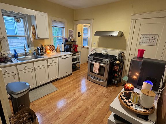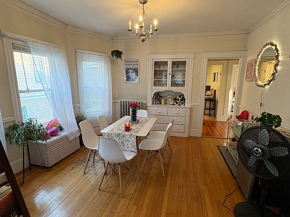 This charming unit boasts hardwood floors, high ceilings, a spacious living room with large windows that allow in an abundance of natural light, a formal dining room, eat in kitchen with granite counter tops, and stainless steel appliances, including a gas range and dishwasher. Additionally, there are 3 good sized bedrooms with big windows and closets and a full bath with tub/shower combo. Private back deck Laundry in the building No pets 1 off-street parking spot Located just over 10 min from Medford/Tufts T stop and close to many shops, markets, restaurants, parks and more Available 9/1