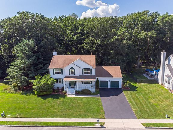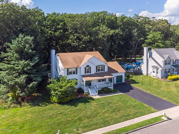 Spacious 4 bedroom 2.5 bath Colonial home with full basement on a large lot! Charming front porch overlooking the beauitful front yard. Crown moulding throughout the first floor. Center hall with titled floors and picture frame molding. Hardwood flooring in living room and formal dining room. Family room with cozy fireplace. Titled kichen and breakfast nook, sliders to huge deck overlooking private backyard w/firepit. Mastersuite complete with masterbath~bonus--loft space in upstairs hall, perfect for reading room! Large attached car garage. Beautiful area, centrally located and close to everything. Close to major roads for commuting~Jersey shore under 30 minutes!