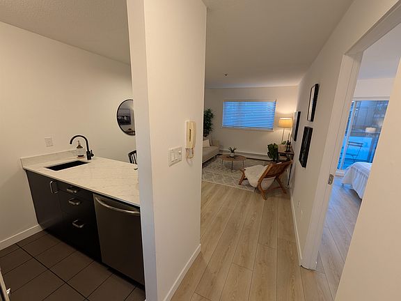 Awesome investment property or starter home! Completely renovated with brand new flooring / kitchen / paint, this sexy one bedroom unit exudes charm with open concept living / dining, black cabinetry + stone counters, new SS appliances, and big bedroom easily accommodates king bed, lovely east-facing balcony. 1 parking + 1 locker (underground parkade). Great building. Great location close to PNE, Hastings shopping, plus easy drive or bus downtown. 2 pets allowed, rentals allowed (no short-term). Super charming!