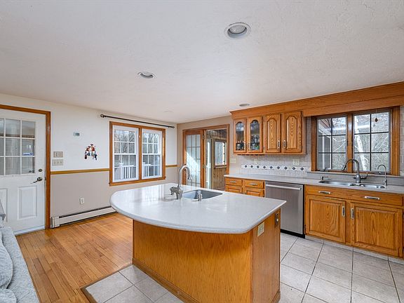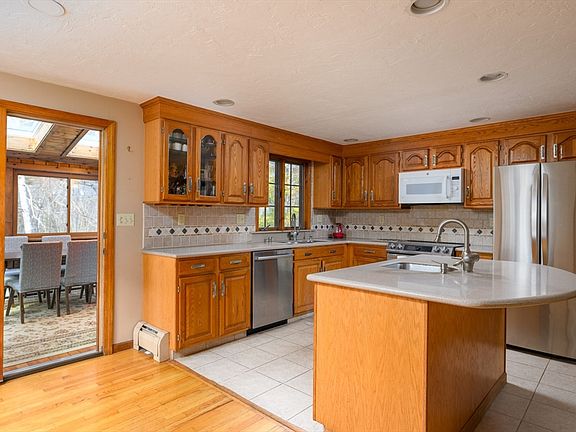 Tucked at the end of a cul de sac surrounded by over four acres of land. Upon arrival you will see the freshly painted exterior , new roof & brick walkway welcoming you inside. Flexible floor plan offers open living area w/FP LR, dining in kitchen w/ corian counters, island & plenty of cabinets. Formal DR & 1st floor bedroom option or office all w/ hdwd floors, step down sunrm offers beautiful seasonal views of the wooded yard accented w/ fruit trees & flowery shrubbery. Large mudrm w/ skylight and slider to young composite deck complete the main level. 2nd floor caries thru the hdwd fls offering 3 spacious bdrms incl the primary suite w/ walk in closet, private bath & French doors leading to your own balcony. LL is finished making a greet office space, family rm or both plus a separate game rm area w/ sauna. From there you can enjoy the beautiful cobblestone patio , garden pond & firepit. Bonus items inc: 2 car garage w/2nd fl storage , new heating sys ,windows & so much more