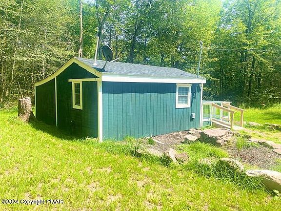 HUGE PRICE DROP!! MOTIVATED SELLER! This is an ADORABLE 1 bed/ 1 bath cabin with SEPTIC and WELL on a large DOUBLE lot that is nicely landscaped with a large deck to enjoy! Under $600 for taxes and low dues. This community is located in natures paradise, surrounded by State Games lands, yet 14 miles to Mount Pocono.