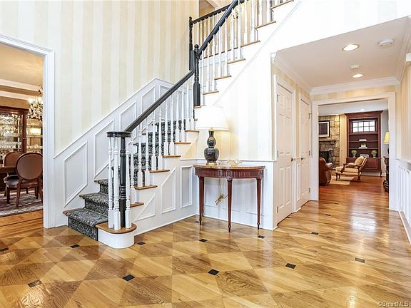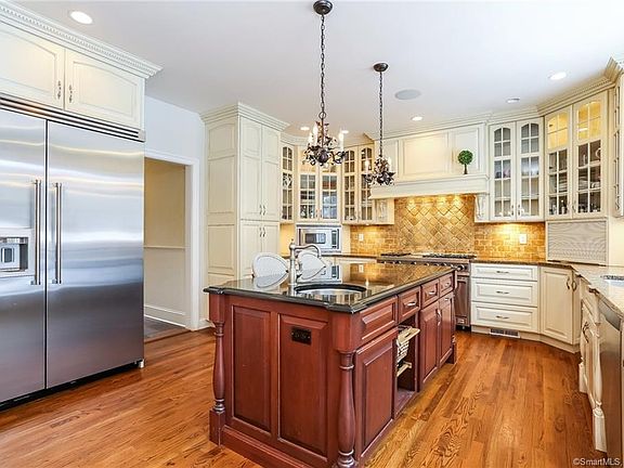 Stately colonial has it ALL! Enter through lantern-lit stone walls onto lovely, open 1.01 acre lot near West School and Irwin Park. Enjoy wonderful light and easy flow throughout the main floor with gracious kitchen, breakfast area and large family room with stone fireplace and handsome built-ins. Formal living/dining room PLUS library and two elegant powder rooms. Four proper bedrooms on the second floor plus huge playroom. Gorgeous patio and pool make this splendid home a haven!