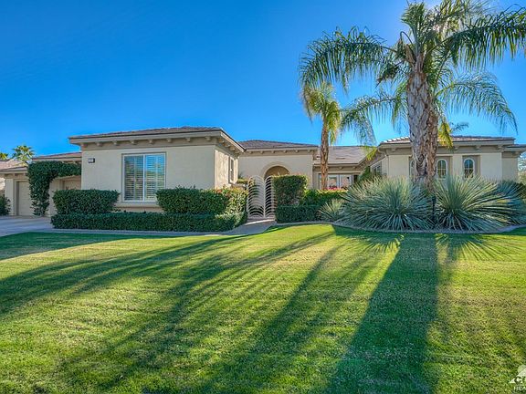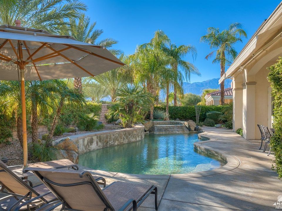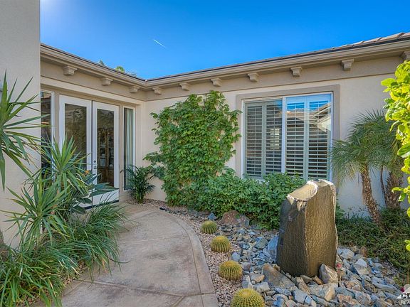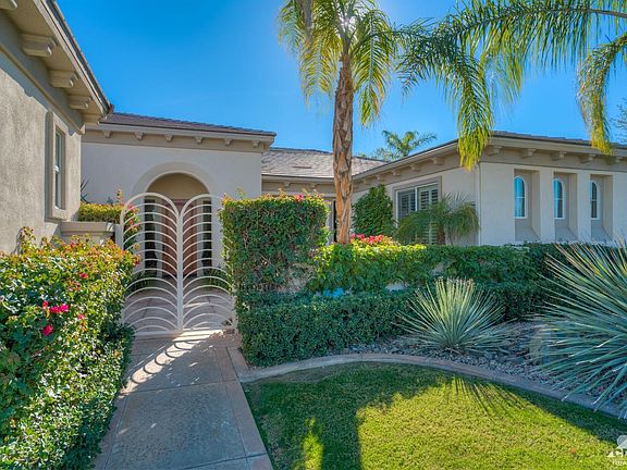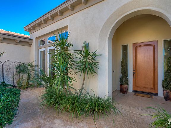 Enjoy the ultimate lifestyle in this meticulously maintained Rancho Mirage property located in the gated community La Toscana. This South Facing residence offers 4,159sf. 4 beds, 4.5 baths, an elegant entry foyer, living room, dining room with double sided wet bar, family room with fireplace, built-in cabinetry and a grand master suite. All of the bedrooms feature their own highly upgraded bathroom, one is a casita located off the private entry courtyard, which has a relaxing rock water feature. This magnificent home sits on one of the most desired lots in the community with wonderful sun exposure, striking mountain views and has a transferable solar system for low utility costs. The rear yard is a perfect retreat and is beautifully accented by lush landscaping, an oversized pebble tec salt water pool & elevated spa, the covered patio is complete with retractable awnings, built-in BBQ and outdoor fireplace. This home is sure to provide endless entertainment and enjoyment.