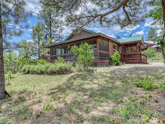 Green Space is next door and a few steps away from the Turkey Springs trailhead in the breathtaking mountains of Pagosa Springs, Colorado, this charming single story home on a half acre has rustic charm with its distinctive log siding. Blending modern convenience with mountain living, this home offers a cozy retreat along with amazing unblock-able views of Pagosa Peak, Coyote Peak (an Elk calving area), and the entire East Range of the San Juan Mountains. This 1427 sq ft. home has two bedrooms and two baths, a lovely spacious kitchen, dining room, living room and a screened-in porch. The dishwasher is two years old, the washing machine is new, along with the storm doors. There is an amazing back deck and a new patio pad in the back yard. The natural light in the home makes the home very light, bright, and cheery. The fenced in yard boasts aspen trees, pine trees and mature landscaping with many bushes and flowers. Pagosa Springs is home to the world's deepest hot springs, millions of acres of National Forest for outdoor recreation, and 30 minutes to Wolf Creek Ski Area with the "most snow in Colorado". The availability close by to hike, Mtn Bike, snow shoe and cross country ski is next to none!