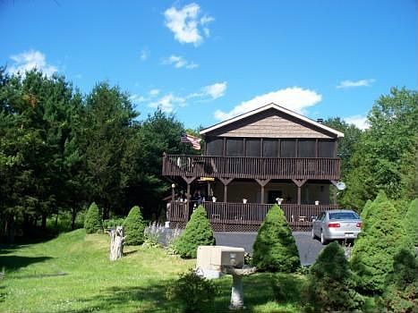 The spacious and bright well maintained chalet is set on a large level lot at the end of a quiet cul de sac in the private Sleepy Hollow Lake Community. This home features 2 levels of living and a great open floor plan. The main living area upstairs has wood burning fireplace,pergo floor, tiled bath with jacuzzi, great kitchen and 2 spacious bedrooms.... plus large screened porch / deck off great room. The lower level has 2 add'l nice size bedrooms, full bath, laundry, family room and another level of decking. All this on a beautifully landscaped parcel in a quiet section of Sleepy Hollow Lake. Home comes complete with deeded lake rights where you can enjoy motor boating, fishing, swimming, tennis and MUCH MORE!!