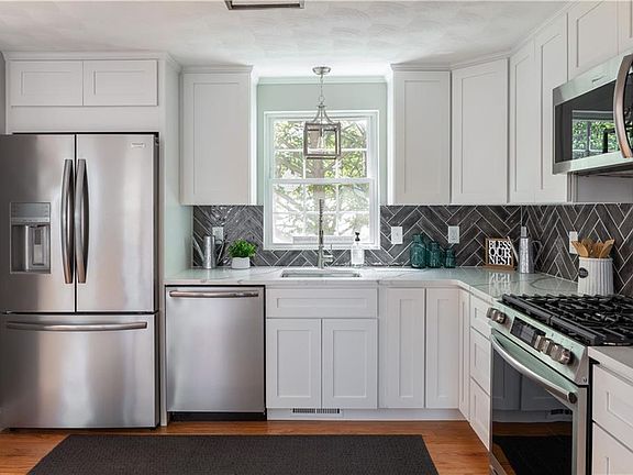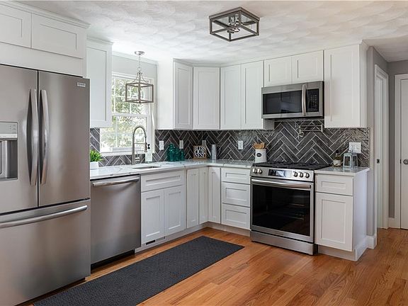 Welcome to 33 Tremont Street! This fully updated 3 bed 1.5 bath colonial offers just under 1,800 square feet of living space. The first floor provides an open and spacious layout. This property showcases a cozy wood burning fireplace family room, an additional living room, dining room, breakfast nook & modernized white shaker kitchen with quartz counters, impressive herringbone backsplash tile & all new stainless appliances. The 2nd story furnishes 3 nicely sized bedrooms with a walk-in closet for the primary bedroom. New hardwood floors throughout, fresh paint, new tile flooring, new bathroom fixtures, all new lighting, new roof, gutters & water heater have all been taken care of. The 9000 square foot yard is fully fenced and offers a new rear deck. An attached 1 car garage is a must have convenience, as well as the central air conditioning this home provides. GREAT combination of size and quality. Schedule your private showing today.
