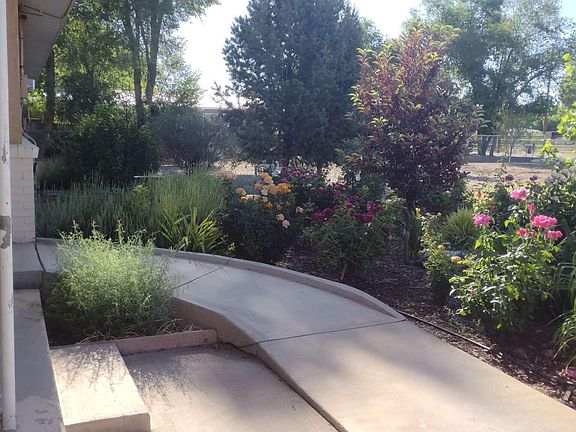 Horse Property 3.41 acres barn with 15 stalls, a tack room, pasture and hay storage. Close in but real country living. Nice treed pasture for grazing and riding and nearby to the ditch and other riding trails. Add in a covered hay storage area and you have everything you need for your personal horses or a fine boarding facility. This would be an EXCEPTIONAL handicap riding facility as the home and bathroom are all set for people in wheelchairs. Comfortable adobe home with large bedrooms, accessible bathrooms and an oversized insulated garage. Custom kitchen with a floating island top of the line range and appliances with an extra gas cooktop and wall oven for gatherings. Comfortable adobe home with three large bedrooms and 3 bathrooms, with handicap shower and wide doorways.