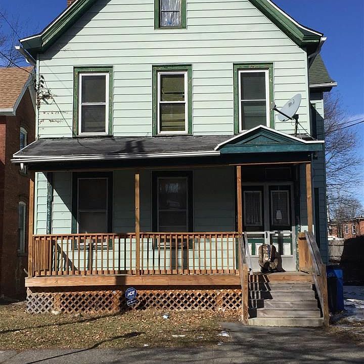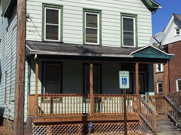 Attention Investors, two family with separate utilities, each unit has 2 bedrooms and a bath, energy efficient windows installed in second floor apt.and includes access to spacious walk up attic, also possible third bedroom in this unit.Property features fenced in yard.Improvements include newer roof, 2nd floor windows,chimney insert,separate electric, fencing and front porch. Condition of first floor heating systems is unknown, electric is turned off. Second floor has electric and heating system is working. Driveway providing off street parking to right of house. Water is shut off. Property sold as is.