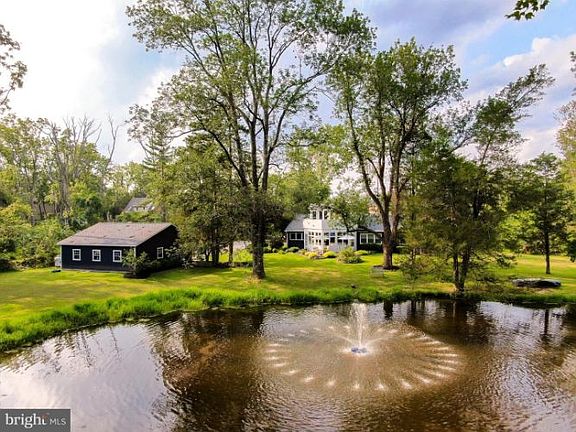 Cross a small bridge off a coveted Lawrence township road and be introduced to this contemporary style ranch that sits on a serene setting. Next to the front screened-in porch is the unassuming front door that leads you into a bright open space overlooking a gorgeous property with a natural pond and stream. First, a formal dining room and living room with a wood burning fireplace has lots of light coming through the fiberglass roof. This space flows into the kitchen and family room with walls of windows and tile floor and a second fireplace. A huge granite island with seating complements the high end cabinetry and stainless steel appliances. Light also flows from the skylight above the circular staircase that takes you to a fabulous loft area and roof deck. Besides the spacious entertaining areas, the main bedroom has an ensuite bathroom that is renovated and includes double sinks, a large shower featuring a glass brick wall and a jacuzzi tub. Two other bedrooms share a hall bath with tub shower. The laundry room and utility area complete the main floor. Additional highlights include hardwood floors, newer windows, a blue stone patio and a huge garage providing extra storage.