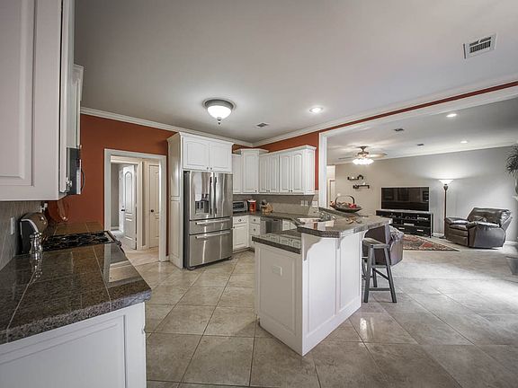 This beautiful home sits on a circle drive in a peaceful neighborhood with no through traffic. The kitchen with granite counter tops, stainless appliances, gas stove, breakfast bar and huge walk-in pantry is open to the spacious great room with gas log fireplace. 9' ceilings throughout, 2 jetted tubs, split bedroom plan, double vanity in both baths, a great walk in closet and a large laundry room are just a few of the extras. Other highlights include a security system, sprinkler system, bonus storage room under the house and a beautiful stone patio in the backyard.