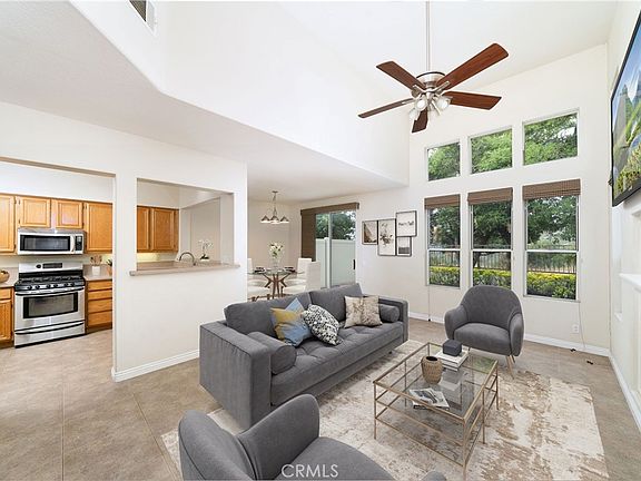 VIEWS VIEWS VIEWS of the surrounding hills & open space of the quiet neighborhood of Villavante. This stunning single family detached home is in the heart of RSM next to the Tijeras Creek Golf Course. The tall dual pane windows provide breathtaking views and an abundance of natural light throughout. Kitchen with stainless steel appliance and 2 breakfast bars is open to the great room with fireplace for cozy nights in. The durable ceramic stone-look tile flooring adds a touch of sophistication to the home. Soaring ceilings make the home feel grand and spacious. All three rooms have fully organized closets. The master suite is complete with a private balcony with expansive views and 2 closets PLUS a walk-in closet. Separate master bathroom oval tub and shower, plus a privacy toilet door. The front, back & side yard sprinklers make it easy to maintain the spacious, lush backyard. Enjoy the peaceful jogging/biking trail behind the property. Equipped with a security camera, tankless water heater and a direct-access garage. Walking distance to Villavante community pool/spa and walking/biking/hiking trails. RSM amenities include tennis/basketball/volleyball/pickleball courts, RSM Lake access, fishing, tot lots, community center, the Beach Club Lagoon with activities for all residents, shopping and restaurants. There are many private and public school options and is assigned to top-rated Arroyo Vista elementary/middle and Tesoro High School.