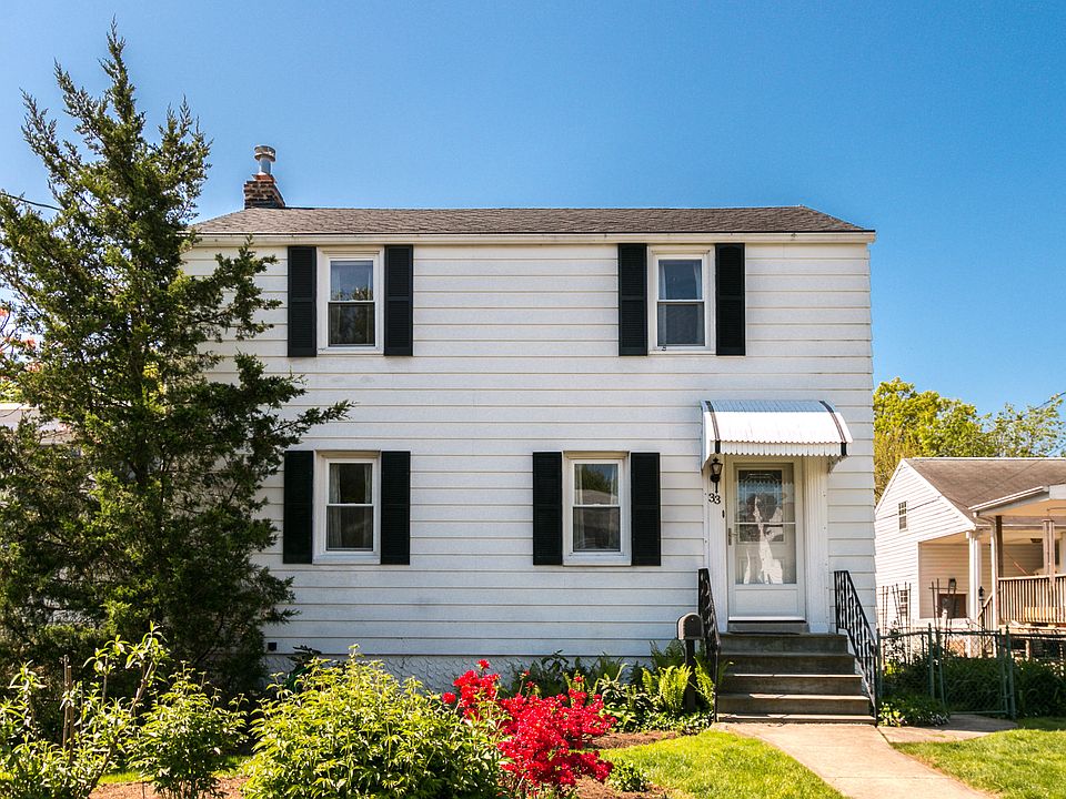 Welcome to 33 Vilone Road! This property has been lovingly maintained by the same family since it's construction in 1950. There are original hardwoods throughout most of the home. The neutral kitchen with newer appliances includes a rolling island which keeps the space versatile while offering additional storage. The cheery family room adds wonderful living area and features bead board paneling, a wood burning stove, and the home's main floor powder room. Upstairs you will find three bedrooms, two with large closets and ceiling fans and a third that could easily be used as a home office or nursery. A renovated full bath with tiled shower completes this level. In the waterproofed, walk out basement, a workshop has storage galore (all cabinets & shelving are included) as well as a laundry space. The yard is a "gardener's paradise" with mature plantings and offers a place to relax on the deck with pergola and sun porch, while hardscaping leads to the grassy yard. There are multiple storage options outdoors, too, including an enclosed under-deck space and a detached shed. Although the owner isn't aware of major defects and the home has been well kept, this is an "as-is" sale. All inspections are for informational purposes only. Flood insurance may be required, please see disclosure.