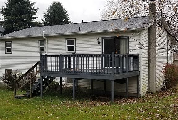 Located on a corner lot sits this split entry style home with a detached two car garage. Covered front porch and rear deck. Typical layout with the kitchen, dining area and living room. Down the hall is the full bath and two guest bedrooms along with the master bedroom with a powder room. Below is an open basement area with a laundry area and nice windows to allow light in. There is an area that is partially finished.