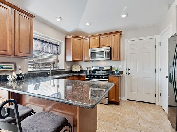 Enjoy the holidays in your new home! Perfect location. Neutral interior with style. Get cozy next to your gas fireplace on snowy nights. Gorgeous kitchen with granite counter tops. Spacious backyard with covered patio & pergola that is perfect for entertaining. Extra wide driveway, double gate and RV pad for optimal parking. Additional storage with built-in garage lift. New water heater & softener, new entry doors. Information provided as a courtesy; buyer to verify.