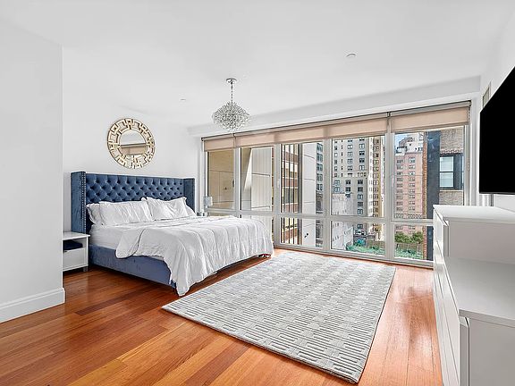 Welcome to 33 West 56th St Residence 8A. Enter into the pinnacle of luxury living in one of the most desirable areas of Manhattan. One of the few buildings designed by visionary architect I.M. Pei, The Centurion is an exclusive condominium perfectly situated just off Fifth ave, minutes from Central Park. Residence 8A is a perfectly proportioned 1210 sqft one bedroom with a den (or home office) , and 2 full bathrooms. Upon entering you are met with an elegant foyer leading to an expansive living and dining room area with teak floors and double paned floor to ceiling windows. The primary bedroom is incredibly spacious with room for a king size bed and sitting area. With a fully outfitted walk in closet, the room is complemented by an en- suite spa- like bathroom with beautiful marble floors. A second full bathroom conveniently has a washer and dryer unit privately tucked away. The kitchen features sleek tile back splash, walnut cabinetry with ample storage and counter space, and premium appliances including a Wolf Range, Viking Microwave, Subzero refrigerator, and Bosch dishwasher. The Centurion offers a private exercise facility, full- time doorman/concierge, white glove service, and 24 hour attended garage. Residents can enjoy upscale hotels, retail, and restaurants located nearby.