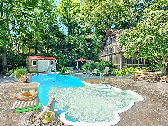 Welcome to 33 W. Mohler Church Road with a picturesque, screened in, wrap-around porch! This charming Tudor style home is situated on over 7 acres of land including a running creek, mature fruit trees and an in-ground pool! With the option to be sold fully furnished this home with private views is just waiting for its new owners. The oversized living area holds the first of two beautiful brick wood burning fireplaces. The second master suite has access to the balcony where you can enjoy the view of the pool- stunning! Enjoy the serenity of sweet ducklings walking through the backyard, playing/fishing in the creek, camping with friends and family around the firepit, picking fresh raspberries from the patch, and watching the spring flowers bloom their vibrant colors. This location is like no other so be sure to check it out TODAY! *available now and showings start 7/23