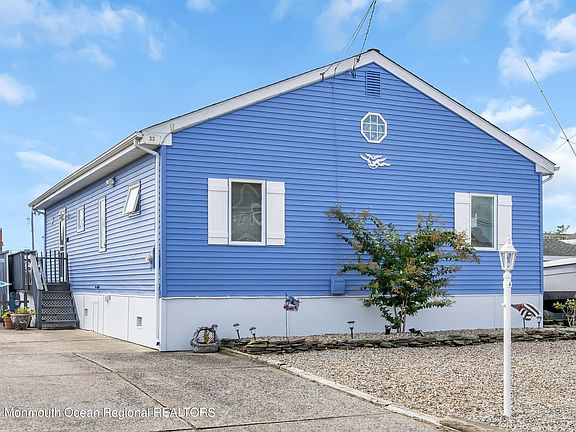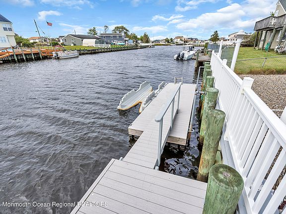 Waterfront home located on a cul-de-sac road in beautiful Mystic Island. Raised ranch w/3 bedrooms and 2 bathrooms; contemporary open floor plan with lots of upgrades. Great views of sunsets and lagoon-wrap around deck. Remodeled kitchen (2017) with upgraded cabinets, granite countertops and island, stainless steel appliances-stove/microwave (2017), new refrigerator/dishwasher (2022). Cathedral ceilings and plenty of natural light. Pergo flooring, new carpeting in all bedrooms (2022). NEW ROOF w/ remote control skylights (Sept 2023). Laundry room w/ washer/dryer; pull down stairs to attic, w/ flooring for additional storage. Gas fireplace (being sold as-is). Low maintenance fenced yard. Vinyl bulkhead and Trex docks. Enclosed outdoor storage under deck. Minutes to bay and close to LBI/AC.