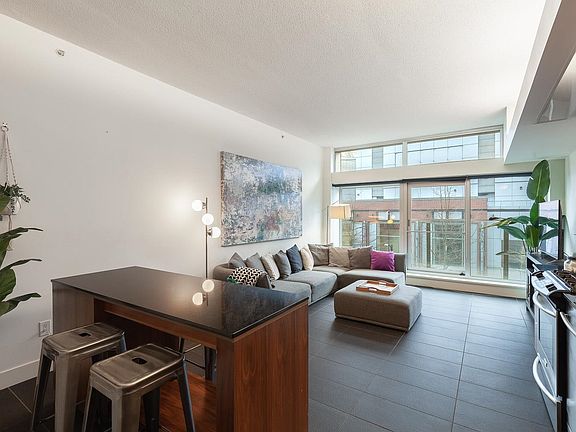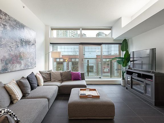 In the heart of Vancouver's first neighbourhood rises this 64-suite, 9-story contemporary residential tower. Looking for a revenue money maker in the city? Here it is. Renters or owners will love the loft-style living with large open floor plans, custom millwork, 10' ceilings & floor-to-ceiling windows that make this home feel huge. Custom built-ins allow for a spacious and modern feel. The bath is a generous 4 piece with a deep tub! Inside the main living area, there is room for dining, living, office and more. Plenty of space for a movable island that can be used for cooking, entertaining or even as your workspace. 1 parking, in-suite storage and close to everything - downtown life, restaurants and transit. Pets and Rentals allowed, including Airbnb.
