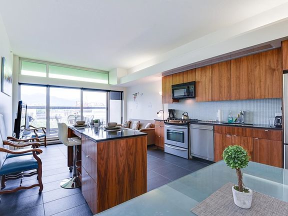 Sleek, sophisticated and modern Junior one bedroom and flex home at 33 LIVING right in the heart of CROSSTOWN with city and mountain VIEWS. This fabulous open concept home designed by award winning architects has a spacious layout with 10 ft ceilings, quality cabinetry, stainless steel appliances, designer lighting, slate tiling, stone counters and built in storage. The flex space makes a great office nook or insuite storage. You can't beat this location, walking distance to some of Vancouver's best restaurants and shops, the Seawall and Vancouver's Business District. One parking included, two pets welcome. Well run building with a guest suite! This makes a great new home or investment property! Air BnB OK!