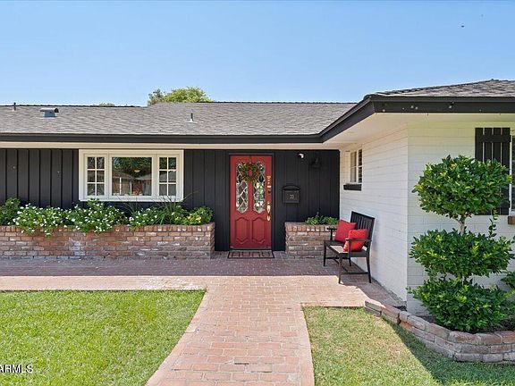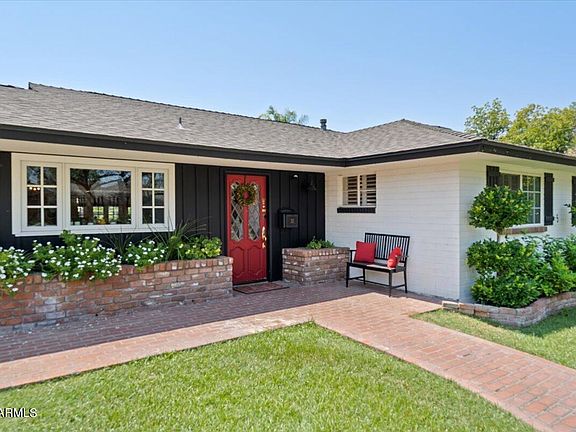Welcome to the epitome of North Central living, situated on a tree-lined cul-de-sac across from Murphy's Bridle Path. This home boasts exquisite curb appeal, blending modern elements with classic red brick. The main house is 3,033 sq ft, featuring 4 bedrooms and 3 bathrooms, dual-paned windows, hardwood floors, plus a freestanding casita/office, with a full kitchen, offering an additional 433 sq ft. The heart of the home presents raised panel kitchen cabinets blending a traditional and contemporary design. It features intricate molding, a butcher block-top island with seating that effortlessly reveals an edge from the black accents and transitions into a spacious dining area. The layout of this home ensures available charm while delivering cozy enclaves throughout. A huge primary suite includes crown molding, a luxury bath area, dual closets and easy access to an inviting outdoor oasis.