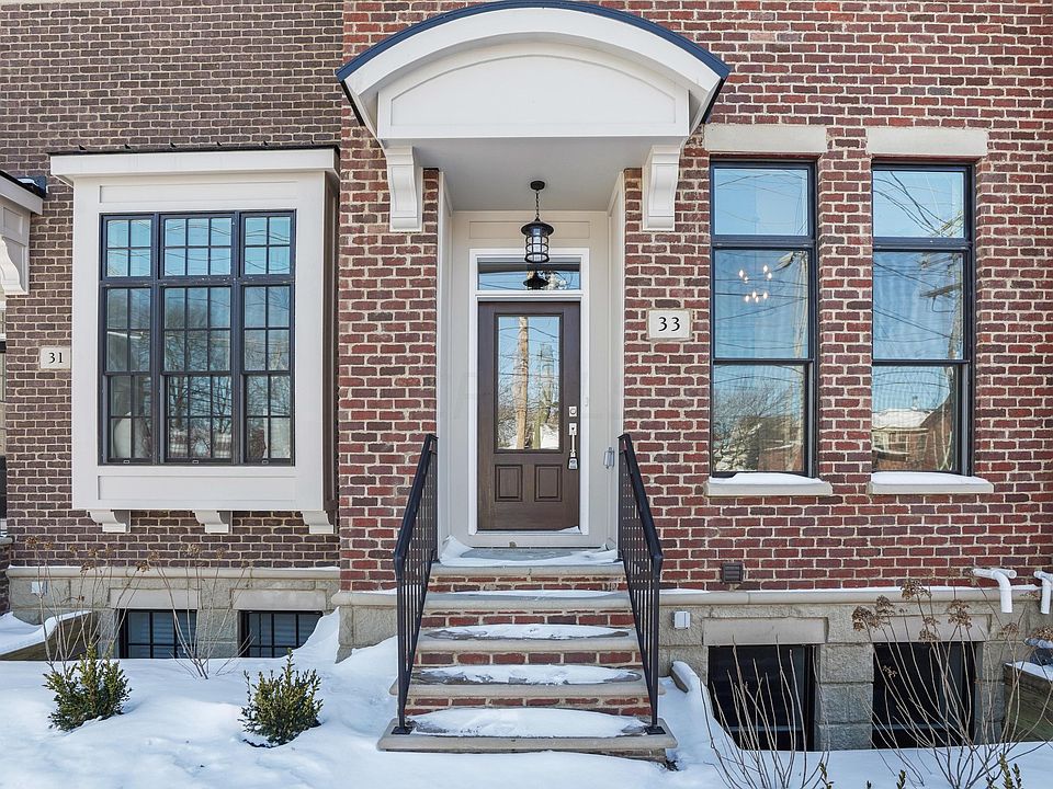 MODEL UNIT. This is the Barley floorplan. This unit is configured with larger master and no flex room. Upgrades include stacked, white painted cabinetry, upgraded appliance package with microwave/oven combination and quartz counters. Laminate wood floors in entry and kitchen levels, ceramic tile floors and tub/shower surrounds in bathrooms. Custom shower pan in master bath with frameless shower door. 4 side brick exterior and Pella aluminum clad wood windows. Fireplace with stack stone surround. Lower level has full bath and can be a third bedroom or recreation/media room. Only 3 units remain in this project.