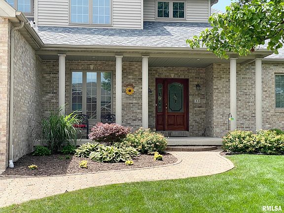 APPLEBEES OFFERS THIS 2002 CUSTOM BUILT HOME IN A BEAUTIFUL NEIGHBORHOOD. PRIDE IN OWNERSHIP EVIDENT. SITS ON A QUIET CUL-DE-SAC- STANDS OUT - LOVE THE ATTRACTIVE COVERED/ COLUMNED FRONT PORCH-LIVELY LANDSCAPING & HARDCAPAED CURVING SIDEWALK- CURB APPEAL IS HAPPENING @ #33 WADSWORTH. OPEN THE DOORS TO WARM &INVITING - A SPACIOUS FLOOR PLAN FEATURES PRETTY LUXURY VINYL PLANKS (SABLOTNEY'S) THAT WARM THE MAIN FL. 9 FT CEILINGS ADD DRAMA, SOLID WOOD STAIRCASE/ DOORS & WINDOWS ADD TO THE CUSTOM "LOOK"- A FORMAL DINING RM + INFORMAL BREAKFAST NOOK - KITCHEN IS GREAT W/GRANTIE - CENTER ISLAND & STUNNING BRAZILIAN CHERRY KITCHEN CABINETS-NEXT UP A BRIGHT 4 SEASON RM THAT STEPS TO A GORGEOUS HARDSCAPED PATIO W/ CIRCULAR SEATING &VIEWS OF LOVELY TREES & WELL DESIGNED LANDSCAPING. BACK INSIDE -3 BEDS UP (19x15 RM USED AS A FAM RM) VERY IMPORTANT MAIN FLOOR HAS A MASTER BEDROOM-W/SUPER BATH & WALK IN CLOSET. L.L.REC RM W/ A COOL BAR TO GATHER! SUPER WORK SHOP- 4 BEDS 3.5 BA-NEWER HVAC & ROOF!