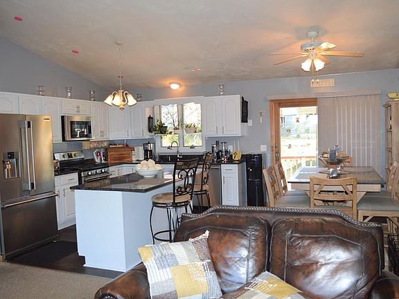 - Kit Dscrp: Flooring - Vinyl, Main Level, Countertops - Stone/Granite/Solid, Deck - Exterior, Ceiling - Cathedral, Kitchen Island, Stainless Steel Appliances, Open Floor Plan, Remodeled, Wine Chiller, Gas Stove