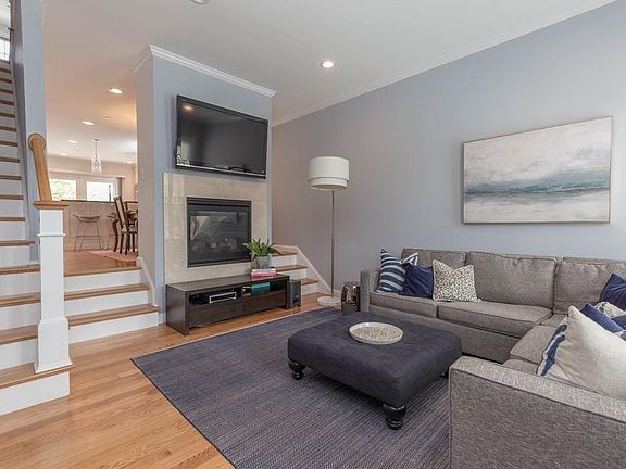 Exceptional 2013 townhome construction in Charlestown's prime gas-light district with 2 OUTDOOR LIVING SPACES & 2 GARAGE PARKING. Boasting 2,000+sqft over 4 levels, this 3+ bed/2.5 bath townhouse feels & lives like a single family. First floor offers sunny living room w/ dual-sided gas fireplace, spacious 6 person dining room and suburban sized eat-in kitchen featuring Viking gas stove, wine fridge & 3 seat breakfast bar. Sliding doors lead directly to over-sized rear deck perfect for entertaining. Second floor features 2 large bedrooms, laundry closet and full marble bathroom. Top floor master sanctuary has private deck with sweeping views, his & hers custom closets and oversized marble en-suite bath w/ dual vanity, soaking tub & separate standing shower. Lower level offers great home office/den with half bath plus extra storage and direct access to 2 garage parking spaces. Professionally managed, impeccably maintained 100% owner occupied association with landscaped common backyard