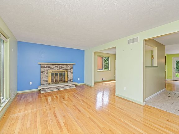 Just off the kitchen, a spacious family room provides additional living space—perfect for relaxing or gathering with loved ones. The cozy living room, centered around a wood-burning fireplace, is ideal for chilly evenings.
