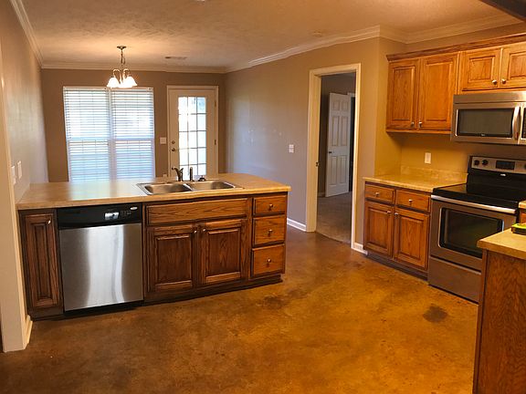 This 3 bdrm 2 bath home is located near Eastside elementary. It has stained concrete floors in the main living areas and carpet in the bedrooms. Large closets. Central H/A. Gas log fireplace. Split bedroom plan. Nice breakfast area. Built in work desk area. 2 car garage. Washer/dryer hookups. Kitchen has electric stove, microwave and dishwasher. Back porch and concrete patio.