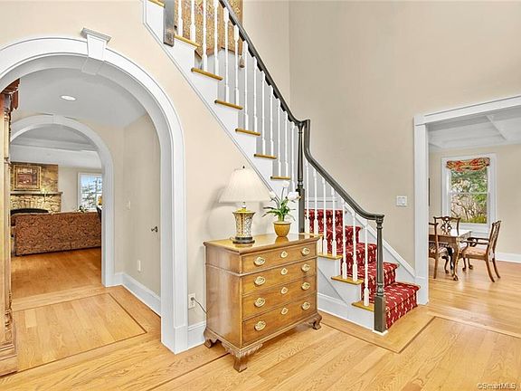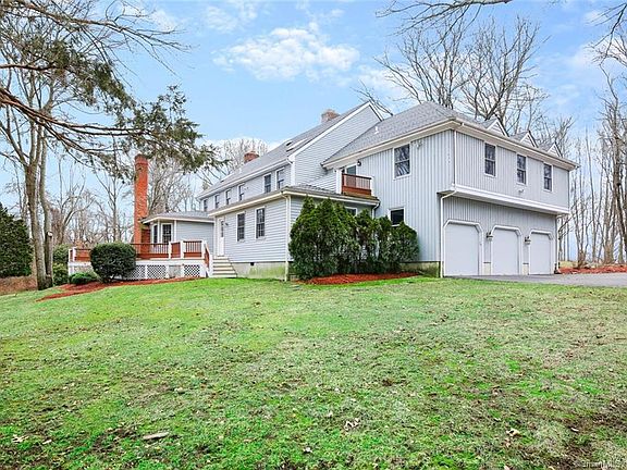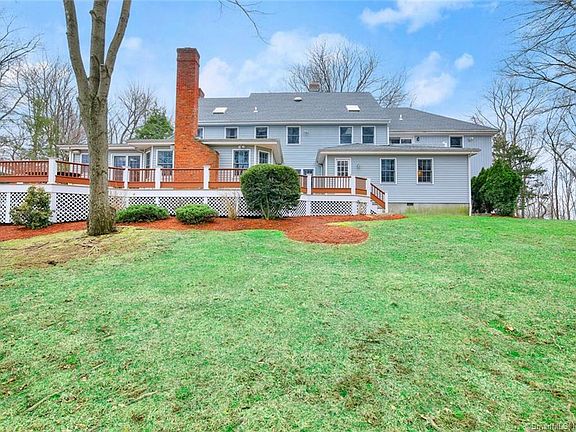Beautiful hilltop colonial home set in one of Wilton's finest neighborhoods "Cannon Ridge", just a half mile walk to fabulous Ambler Farm & Rolling Hills Country Club. Short drive to Wilton/Westport Metro North train stations and all Wilton schools. Level front & backyards, beautiful towering trees/gardens - loads of privacy in a bucolic setting with sunset views! Gorgeous custom kitchen with center island breakfast bar- wide open to the heart of the home -the family room. Enjoy the fieldstone wood burning fireplace, custom built-in cabinetry/entertainment center & breakfast nook. Generous formal rooms with impressive double story cathedral ceiling Living Room & sunken coffered ceiling Dining Room! WORK FROM HOME in the private first floor library w/built-in shelves and wet bar! The large mudroom is directly off the 3 car garage and 15x12 laundry/craft room. All bedrooms located on the 2nd floor. The over-sized Owner's suite includes a sitting room/office, deck balcony, THREE walk-in closets (one cedar), fabulous oversized bathroom - 2 sinks, Jacuzzi tub, heated tile floors, heated towel rack, walk-in steam shower. Bonus finished space in basement ADDS 520 sqft - currently used as Owner's office/exercise space. Additional features: 3 fireplaces (one gas), NEW ROOF, NEW WELL PUMP, NEW wrap around back yard deck. All systems in excellent condition and serviced regularly. Full perimeter basement drainage system in place. Exceptional neighborhood in WILTON! Plowing cost split between 4 neighbors off of shared main driveway. $55/snow plow. Price includes the private and shared components of driveway and shoveling the walk to the front door. ** STEEL structural horizonal support beams in basement and first floor ceiling. **Oak hardwood floors are under all carpeting in 2nd floor bedrooms.