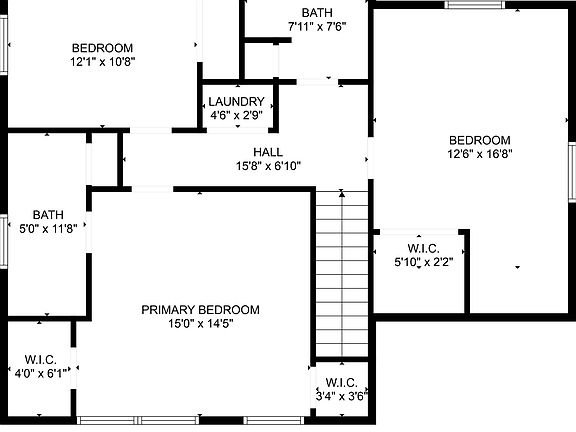 Upstairs, the primary suite and two additional bedrooms are paired with a centrally located laundry closet for added convenience. Hardwood-style laminate flooring runs throughout the home, complemented by tile baths and cozy carpeted bedrooms.