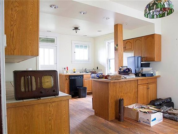 A very spacious home that needs just a little of imagination to be turned into its old glory. All brick home. Formal entry with 2 closets, nice size kitchen open to dinigroom, Spacious living room with covered side porch, overlooking wooded area. Exposed hardwood floor. 3 bedrooms, 1.5 bath,. Updated furnaces. Nice yard that is completely wooded. Super private