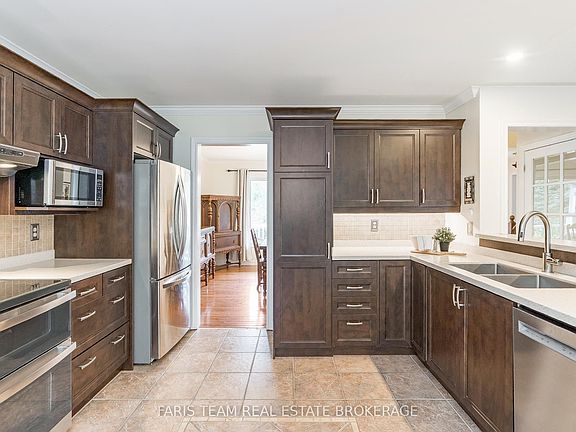 Top 5 Reasons You Will Love This Home: 1) Stunning two-storey family home complete with a new roof (October 2025) and nestled on a quiet Midhurst street, set on a large 0.46-acre pie-shaped lot with a spacious, private backyard and mature gardens for beautiful curb appeal 2) Lovely updated kitchen with stainless-steel appliances, a double oven, Corian countertops, and a large window overlooking the yard, open to the inviting family room with a gas fireplace, alongside a formal living room with French doors and a separate dining room 3) our generously sized bedrooms with oak hardwood flooring underfoot, including a bright primary suite complete with a full ensuite for added comfort 4) Fully finished basement hosting a family room, a games room, an additional bedroom, and a full bathroom, providing plenty of space for family living and entertaining 5) Thoughtful updates include triple-pane windows (2024), a newer furnace, ductless air conditioning in the primary bedroom, a new asphalt driveway (2025), and a septic bed (2020), all adding to the long-term value and peace of mind. 2,310 above grade sq.ft. plus a finished basement. 3,242 total finished living space.