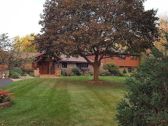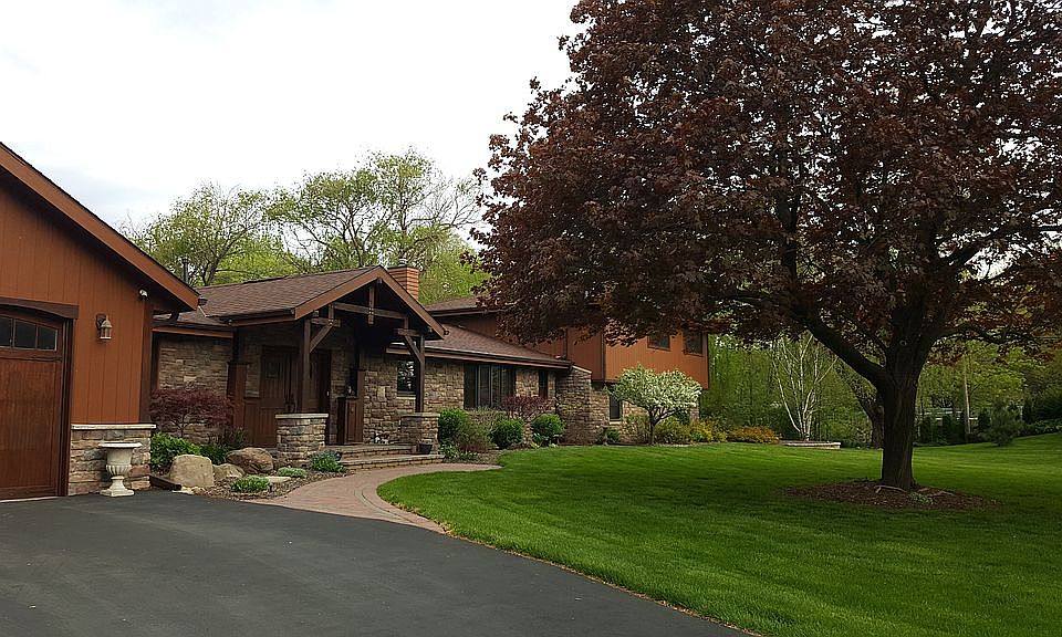 ONE OF A KIND, stone home with custom trim and solid arched paneled doors. Beautifully landscaped with paver walkways, covered front porch and covered backyard patio with custom fireplace- great for entertaining. This home sits on a 1.1 acre lot right on Blackberry Creek, you can kayak/canoe right from your own backyard. Enjoy the beautiful sunsets from inside and out, the yard is already set up with an electric fence for your furry friend. Stunning front entrance. Engineered hardwood floors and gorgeous custom wood work throughout the main and lower levels. Open floor plan for large gatherings and oversized hallways. Enjoy the privacy and picturesque views with no neighbors behind property. MOVE IN READY, all appliances stay. Tons of storage space throughout the home and garage. Security camera system also included.